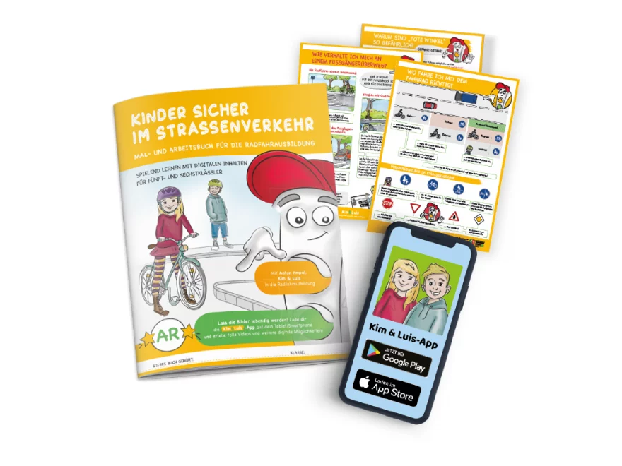 Besonders spannend und anschaulich ist die Einbindung modernster digitaler Augmented-Reality-Technologie mithilfe der kostenlosen Kim & Luis-App. Durch die richtige Lösung aller Aufgaben machen die Kinder schließlich ein virtuelles Fahrrad Schritt für Schritt verkehrssicher – und werden mit einer funktionierenden Klingel, hellem Licht und vielem mehr fürs Mitmachen belohnt.